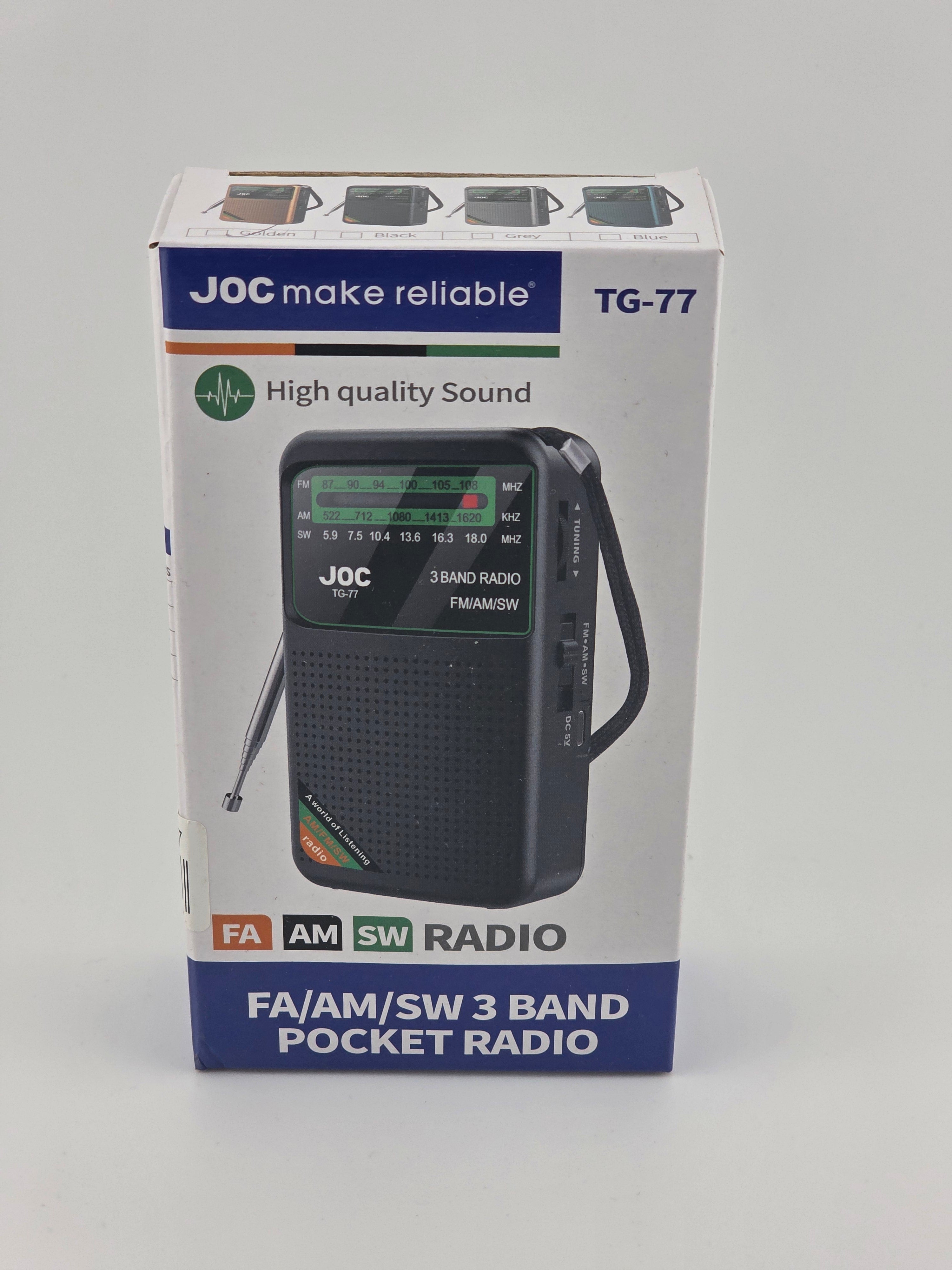 POCKET RADIO TG-77 Share WhatsApp Deel X Pin it Messenger Email POCKET RADIO TG-77 Share WhatsApp Deel X Pin it Messenger Email Product form FA/AM/SW 3 BAND POCKET RADIO Read moreSKU: TG-77 $5.00 Quantity Add to cart This item is a recurring or deferred purchase. By continuing, I agree to the cancellation policy and authorize you to charge my payment method at the prices, frequency and dates listed on this page until my order is fulfilled or I cancel, if permitted. You need to be a registered customer to order this product Shipped today? Order within: Oct 25, 2025 17:00:00 -0400